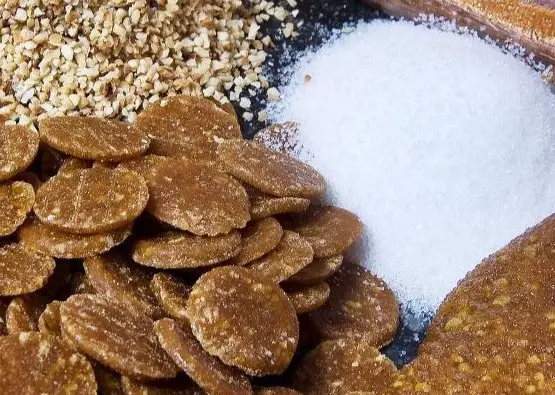 La nougatine peut également être déclinée sous forme de granulés comme garniture de robes.